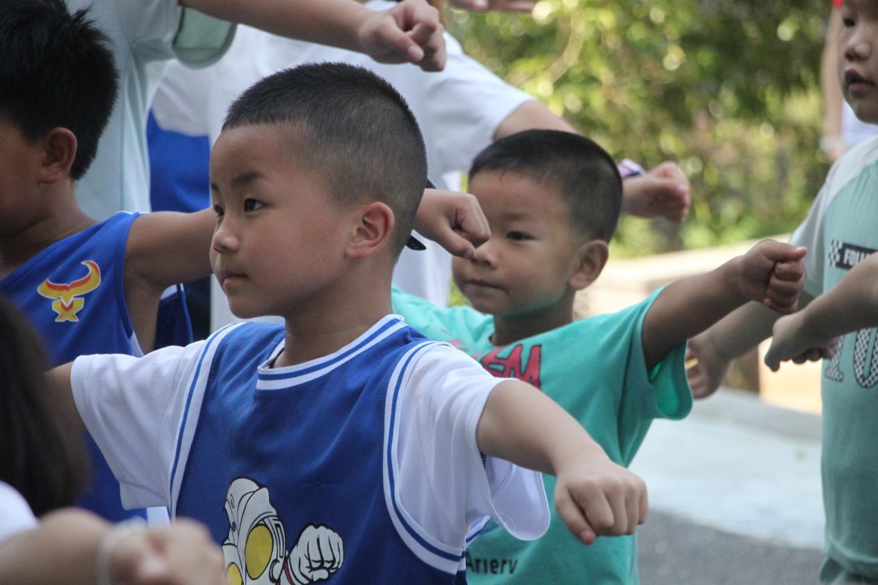随后,志愿者带领孩子们学习了《少年中国说》的舞蹈,将少年的意气和奋进的力量融入到每一个舞蹈动作中。“把手臂展开,就像要托起明天的太阳!”志愿者一边示范舒展的动作,一边用昂扬的语气讲解:“这是属于少年的朝气,就像歌里唱的那样,‘少年自有少年强’。”孩子们的眼神变得明亮,逐渐从轻快的律动中沉静下来,有力地挥动手臂时,仿佛在拥抱远方,沉稳地踏在地上时,就像在扎根于土壤。随着振奋人心的旋律,课堂里涌动着蓬勃的生命力和活力。在分组展示时,孩子们昂首挺胸地表演,虽然动作有些稚嫩,但透露出认真的态度,每一次伸展都仿佛在诉说着对成长的向往。