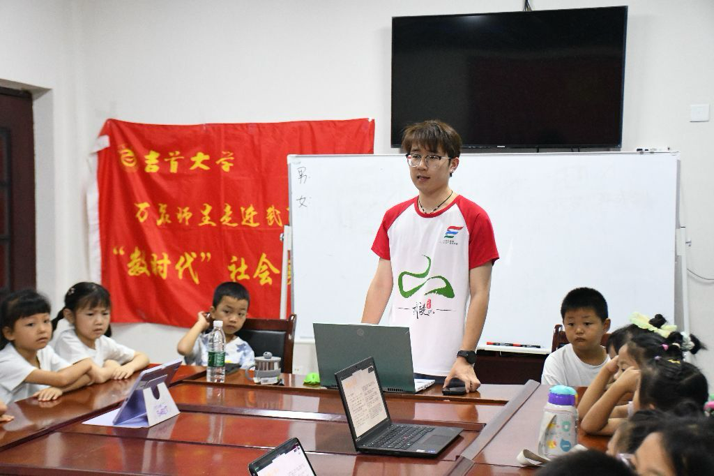 (通讯员 樊天逸 尹堂宇 张安琪)为提升乡村儿童语言表达能力与审美素养,以文化浸润厚植乡村教育振兴的根基,让朗诵成为撬动乡土少年精神成长的支点。7月8日,吉首大学数学与统计学院“数时代”社会实践服务团在双塘镇双塘村“三下乡”活动中,创新开设“朗诵小达人训练营”特色课程。支教老师樊天逸以趣味化、沉浸式教学,带领孩子们探索声音的魔法,在经典诗文的韵律中筑牢文化自信。