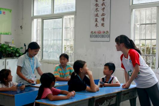 (图为志愿者倾听孩子自我介绍 艾思言 摄)