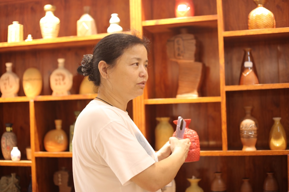 (图为公司彭主任向团队成员介绍土陶产品 刘瑶摄)