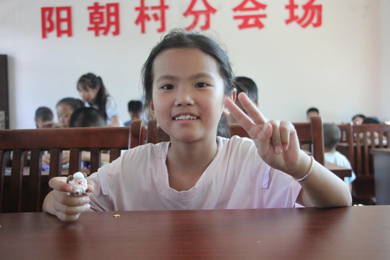 手工课上,彩色黏土成为创意媒介。孩子们用黏土塑造出绵羊、章鱼、樱花树等造型,更有孩子怀着崇敬之情制作五星红旗。“老师,我用树叶在黏土上印了花纹!” 一名孩子展示着带有叶脉的 “发光树叶”。志愿者手把手教学揉、搓技巧,帮助孩子们完成作品。展示时,有孩子捧着黏土 “冰淇淋” 说:“想送给夏天在地里干活的妈妈”。