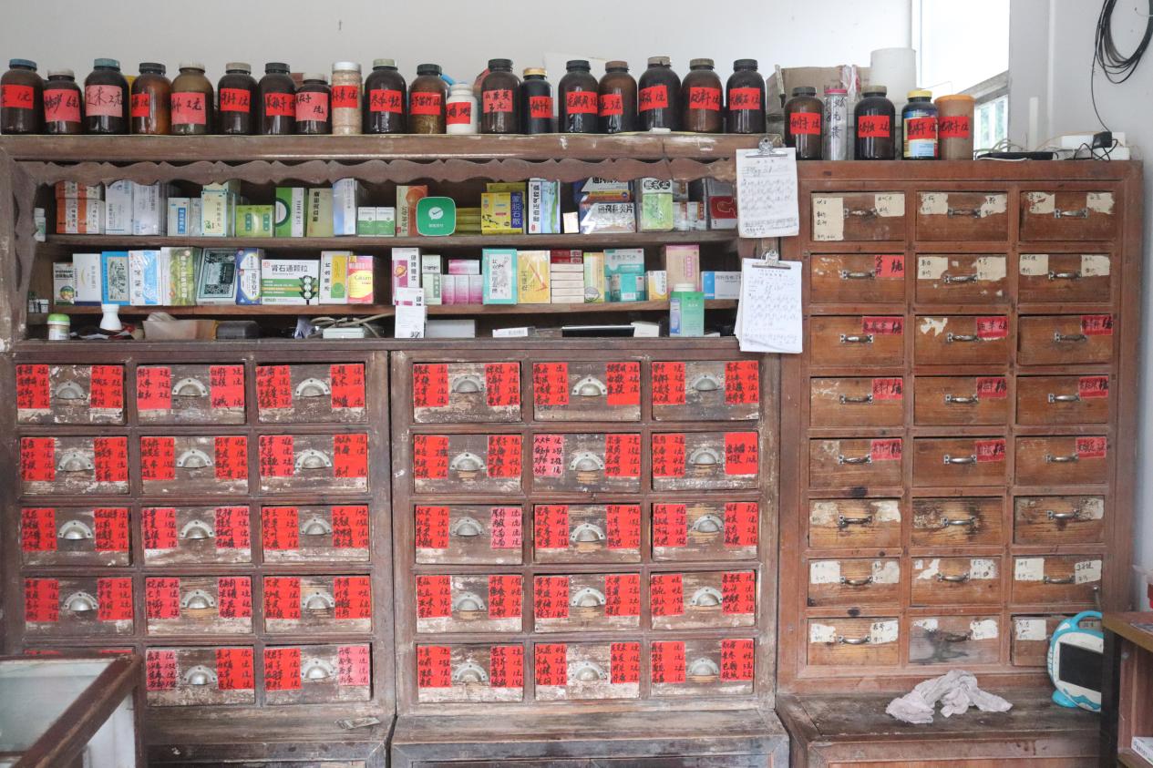 (图为 老中医张安成的药材柜)