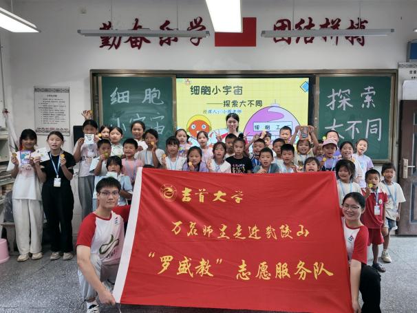 (通讯员 周朋琴)7月11日,吉首大学师范学院“罗盛教”志愿服务队在吉首市矮寨镇矮寨小学为孩子们带来了一堂别开生面的生物探索课——细胞“小”宇宙,探索“大”不同。
