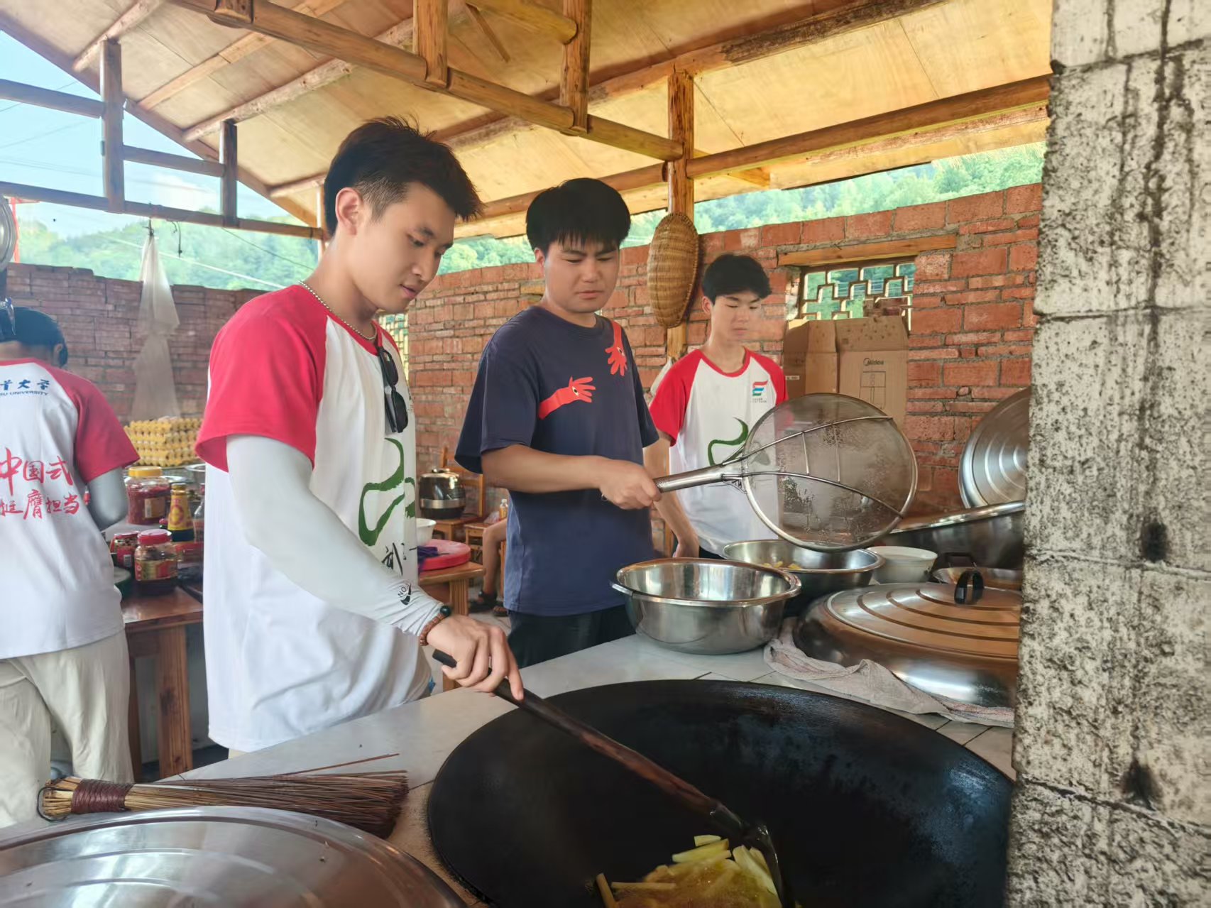 (通讯员 康成婧 彭雨琪)清晨六点,吉首大学“云上学堂”社会实践团驻地厨房灯火已亮。锅碗瓢盆“交响乐”中,一群平日执笔敲键的大学生,系上围裙,在闷热的“烟火课堂”里,开启服务团队、锤炼自我的一天。汗水,是他们最生动的实践笔记。