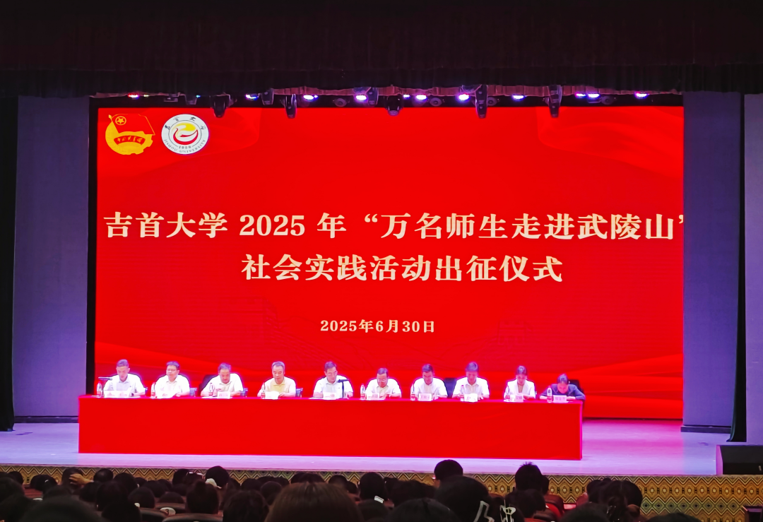 (通讯员 吴圆月 代玉洁 姚南平)2025年6月30日,吉首大学砂子坳校区实验剧场内红旗飘扬,誓言铮铮。一场庄严神圣的吉首大学2025年“万名师生走进武陵山”社会实践活动出征仪式在此展开,吉首大学人文学院芙蓉学子“湘土青年”文化振兴团队作为其中一员,将以湘西土家族文化为核心研究对象,深入永顺县司城村,探索土家族文化赋能乡村振兴的创新路径。