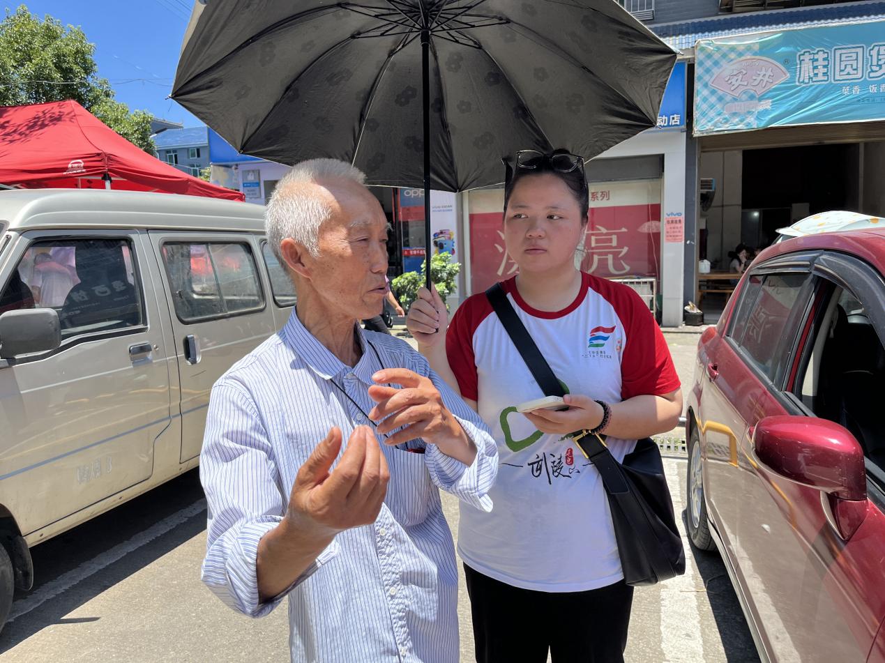(图为实践团成员对托口镇潘姓老人进行访问 邓戈涛摄)