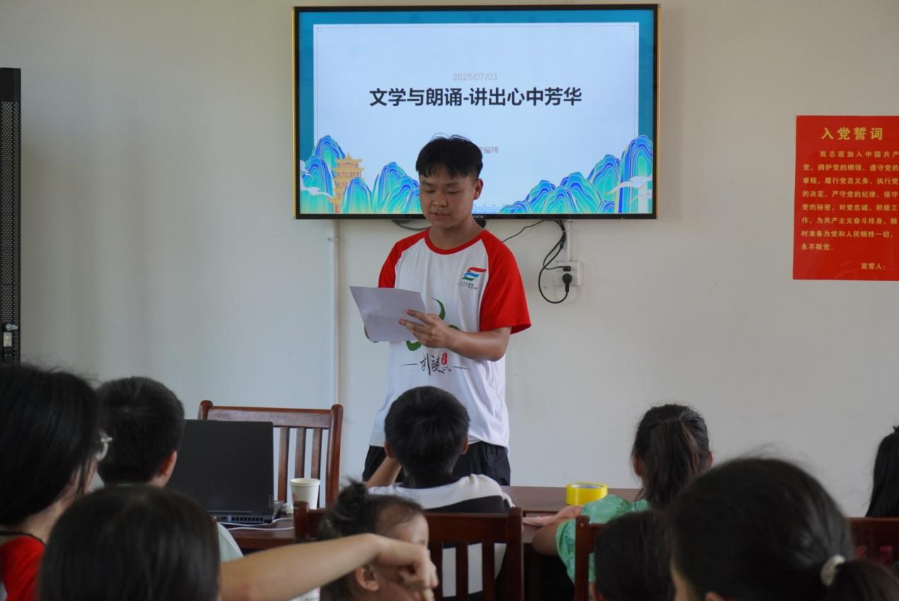 (通讯员 李丹茹)朗诵,作为语言艺术的瑰宝,承载着中华民族深厚的情感与智慧,是乡村文化振兴中不可或缺的精神力量。吉首大学“码上彩虹”社会实践调研团走进保靖县阳朝乡,通过朗诵艺术的传播,让乡村孩子们感受语言的魅力,为乡村振兴注入文化的活力。