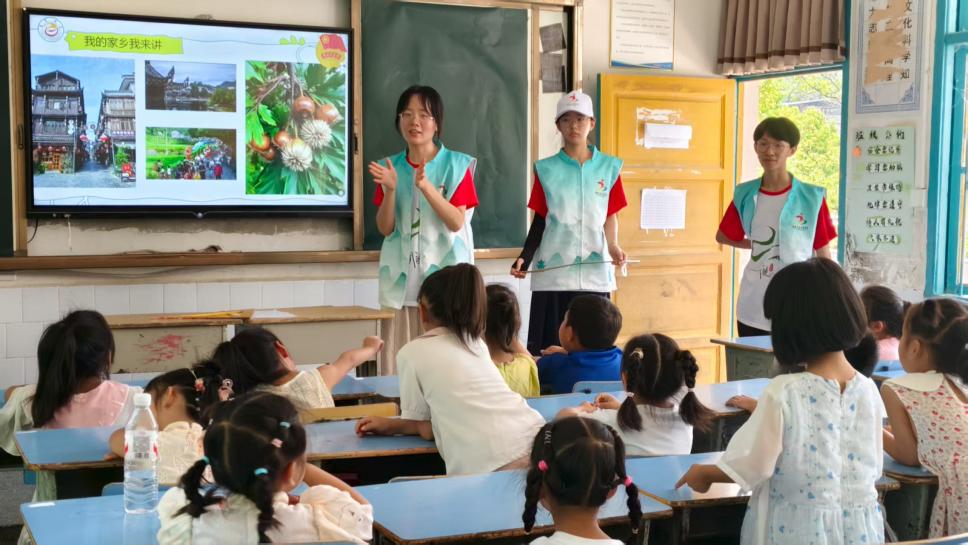 以安全为基打造有温度的启蒙课堂。7月5日上午,边城镇中心小学教室举行暑期支教营开班仪式。实践团认真梳理校园安全规范,为适龄儿童们量身定制涵盖趣味语文、红色教育、五防教育等多元课程。在首堂地理课上,实践团成员通过图片与互动问答,引导孩子们以“我的家乡”为主题,探索全国各地风土人情。五年级学生小玉兴奋地展示湘西吊脚楼图片:“原来我的家乡和哈尔滨冰雪大世界一样独特!”