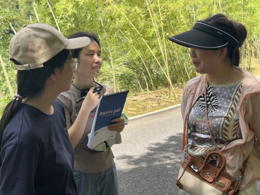 调研当天,团队成员分组深入村寨,走村入户,主动敲开村民家门,与不同年龄、不同身份的村民面对面交流。老人、小孩、非遗传承人皆是他们重点倾听的对象。一户户家中、一处处田垄旁,摆手舞的节奏、土家歌的旋律、刺绣背后的故事,在交谈中娓娓道来。“以前摆手舞是村里一年中最热闹的事,舞几天几夜都不停。”一位年近古稀的村民回忆,“现在年轻人走出去多了,热闹场面少了,但文化的根还在,只要还有人愿意学,就能一直传下去。”在这些质朴真挚的话语中,团队成员真切感受到,尽管乡村文化传承正面临断裂风险,但村民的文化认同与传承意愿依然深厚而顽强。