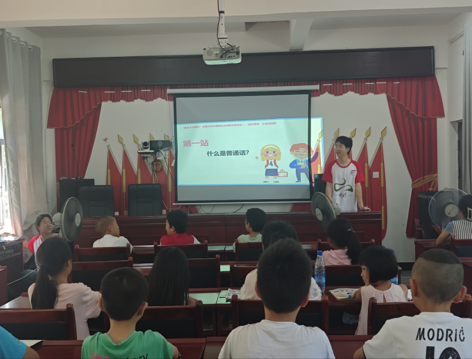 吉首大学“药好青春”推普实践团精心打造了此次面向乡村青少年的推普系列课堂,本系列课堂共包括什么是普通话、普通话与方言的联系等5小节课程。开班课上,小老师们用一段妙趣横生的动画短片《什么是普通话》点燃了孩子们的学习热情。实践团成员化身亲切的语言“播种者”,通过精心设计的互动问答、情景模拟和趣味游戏,将抽象的普通话知识转化为孩子们可感、可学、乐用的生动体验。在轻松活泼的氛围中,孩子们积极跟读、踊跃发言,标准的发音练习声此起彼伏。寓教于乐的教学方式,不仅有效提升了孩子们的普通话表达能力,更在他们心中悄然播下了热爱祖国语言文字、自信沟通表达的种子。