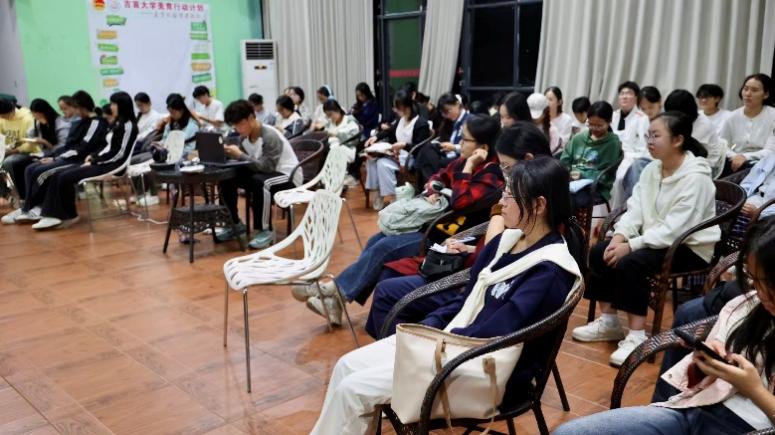 在嘉宾分享环节,吕定红老师作为“三下乡”暑期社会实践带队老师,分享了实践过程中的动人故事与同学们的成长蜕变;胡昱芊同学结合调研组经历,讲述了调研成果背后的实践故事与个人收获;王博同学聚焦宣传工作,分享了新闻撰写与视频剪辑的实用技巧;秦海鹏同学则从多场景拍摄出发,交流了如何用镜头捕捉支教温暖、助农亮点与调研真实。